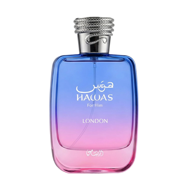 Hawas London de Rasasi es una composición moderna construida alrededor de una apertura fresca y suavemente especiada y una base cálida de madera y ámbar. Comienza con una combinación brillante de pimienta rosa, pera y azafrán que da una impresión crujiente, afrutada y ligeramente especiada. El corazón se centra en rosa, incienso y flores blancas suaves, creando un carácter floral limpio, ligeramente cremoso con un sutil acento resinoso. En el secado, maderas rubias, vainilla, ámbar y almizcle proporcionan una base suave y cálida que se siente pulida pero no pesada, lo que hace que la fragancia sea adecuada para una variedad de entornos, desde el uso diurno hasta las ocasiones nocturnas.